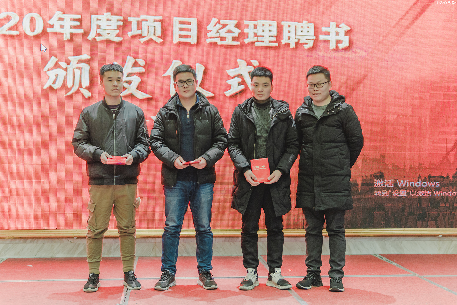 按照流程,大會舉行了項目經(jīng)理聘書頒發(fā)儀式。工程部副主任張鵬飛給新晉升的項目經(jīng)理逐一頒發(fā)了聘書并合影留念。3名工程人員從張副主任手中莊重地接過代表著公司認(rèn)可和責(zé)任的聘書。