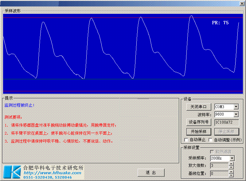 該產(chǎn)品通過(guò)紅外線檢測(cè)手指指尖血容積變化,輸出脈搏波的數(shù)字信號(hào),通過(guò)USB口與PC機(jī)或其它智能終端產(chǎn)品連接。本產(chǎn)品附有驅(qū)動(dòng)程序、演示程序、通信協(xié)議等,可進(jìn)行二次開(kāi)發(fā)。廣泛應(yīng)用于基于PC機(jī)的脈搏波分析系統(tǒng)。