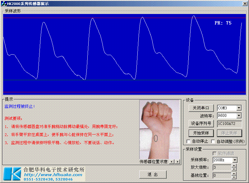 HK-2000C集成化數字脈搏傳感器是在HK-2000B的基礎上增加了程控放大電路、基線調整電路、A/D轉換電路、串行通信電路,方便用戶集成及二次開發(fā)使用。壓電式原理采集信號,數字信號輸出,直接通過USB或串口輸出脈搏波波形數據。在電腦上運行我們附送的演示程序可以直觀的在電腦屏幕上顯示脈搏波形并可以對波形的幅值、頻率、基線等進行調整。該產品可應用于脈率檢測、無創(chuàng)心血管功能檢測、妊高征檢測、脈象診斷等。
